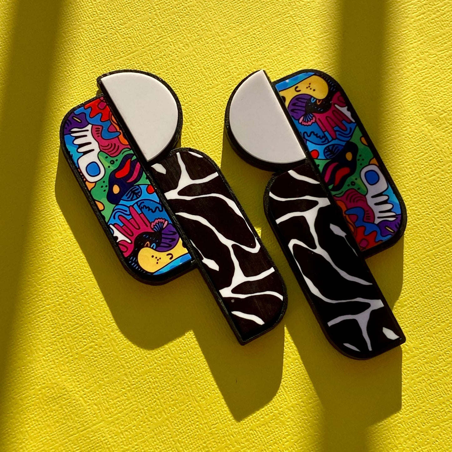 Introducing new Aya, where wood meets colorful acrylic for a statement earring that's also wearable art. Show off your unique style and playful personality with Aya!