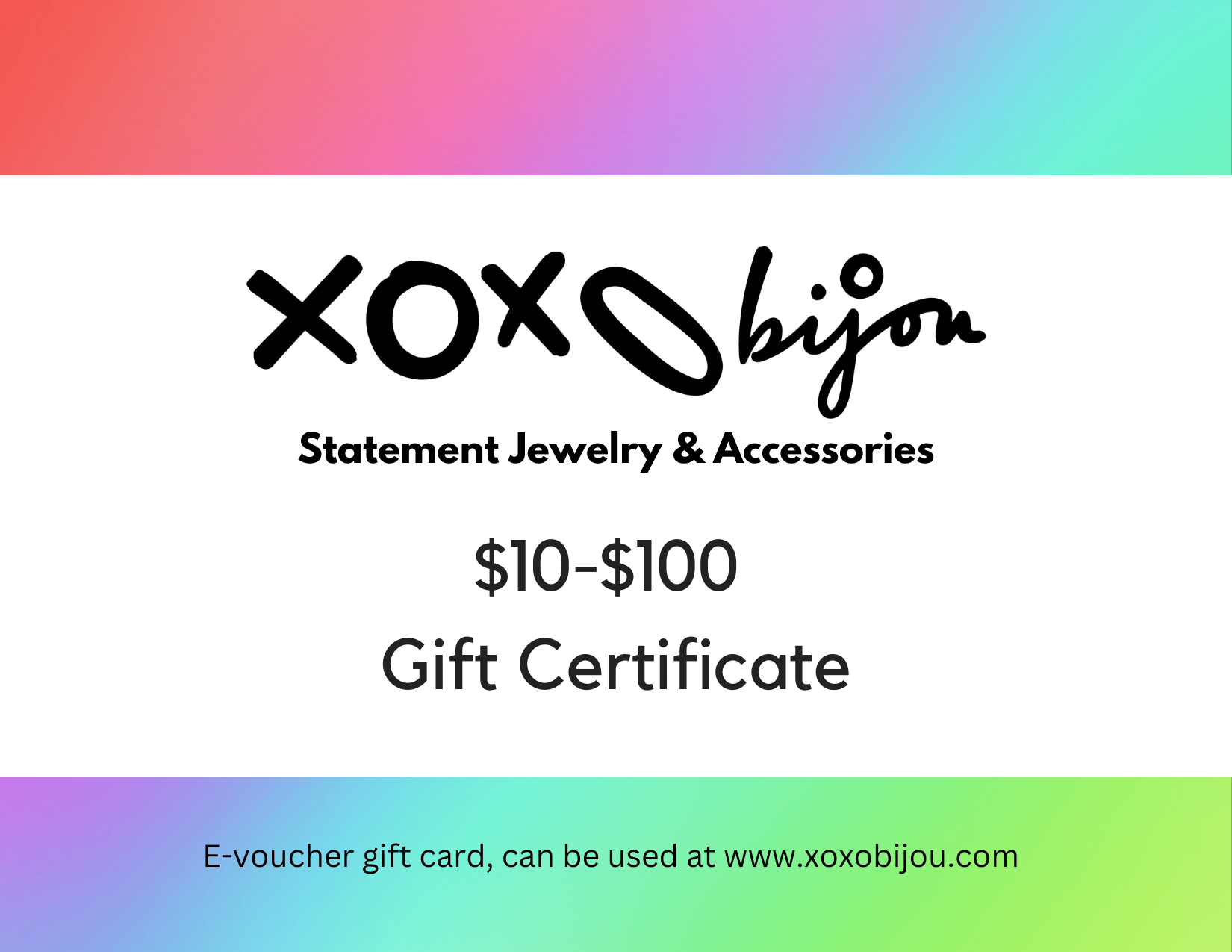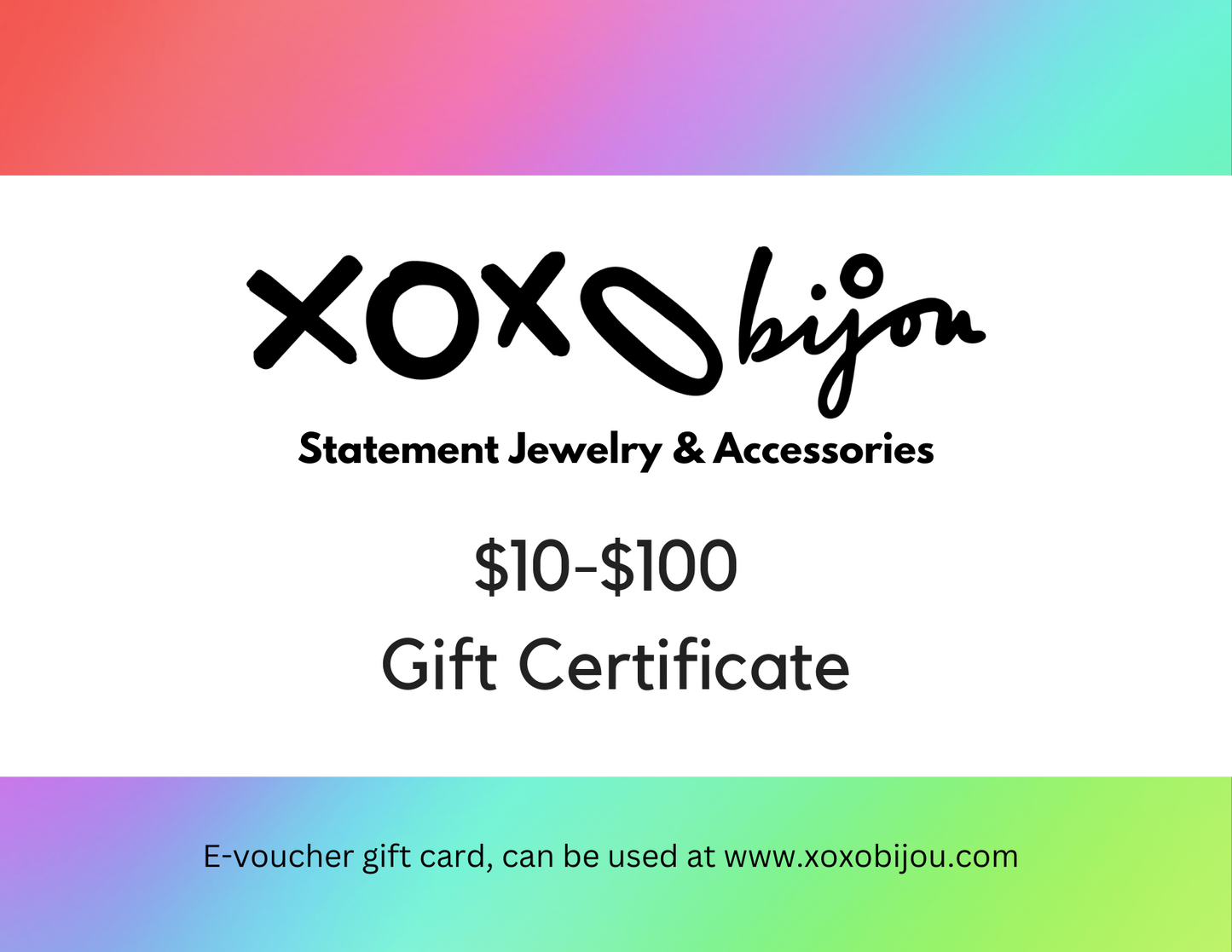 Gift that special someone with the perfect present: Gift Cards by XOXO Bijou! Whether it's for a birthday, anniversary, or just because, our gift cards are sure to bring a smile to their face. Treat your friends and family to something extra special! 🎁
